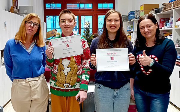 Komise anglického jazyka dne 12. 1. 2026 uspořádala školní kolo oblíbené konverzační soutěže v anglickém jazyce, kterého se zúčastnilo celkem 16 finalistů z 1. – 3. ročníků. Soutěž probíhala ve dvou kolech. Písemná část formou online soutěže Best in English v úrovni C1 prověřila receptivní dovednosti 123 soutěžících, zatímco ústní část se zaměřila na schopnost spontánní konverzace a pohotovost při řešení situací.