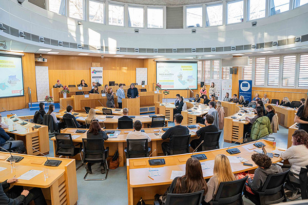 Naši žáci reprezentovali školu a Plzeňský kraj na regionální konferenci Rady mladších v Českých Budějovicích. Dva týmy žáků – Kateřina Červená, Natálie Kováříková a Adam Rataj ze 3. GD a Tereza Bartůňková a Viktorie Alexandra Geigerová ze 2. GD připravily pod vedením školní metodičky prevence Mgr. Hany Kubálkové prezentace k tématu Svoboda slova a veřejnoprávní média v demokratické společnosti. Také diskutovaly k dalším tématům konference – Závislost jako nejlepší cesta k finanční chudobě a Vzděláváním k udržitelnosti a udržitelnost vzdělávání.
