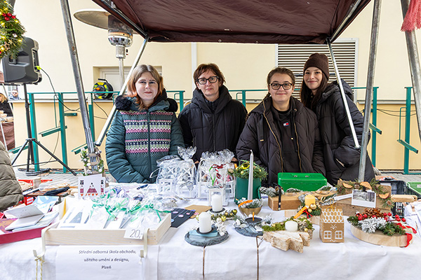Také v letošním roce žáci a žákyně oboru Aranžér vyráběli adventní dekorace. Některé z nich bylo možné zakoupit 4. 12. 2025 na vánočním trhu na Krajském úřadě Plzeňského kraje. Dále se všechny ročníky oboru Aranžer podílely na výzdobě interiérů pro adventní komentované prohlídky na zámku Kozel.