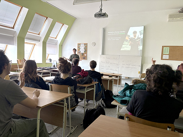 Dne 6. listopadu 2025 navštívil naši školu absolvent oboru Multimediální tvorba, pan Roman Zahálka, který s žáky 4. ročníku vedl besedu o pokračování jeho kariéry po dostudovaní školy.