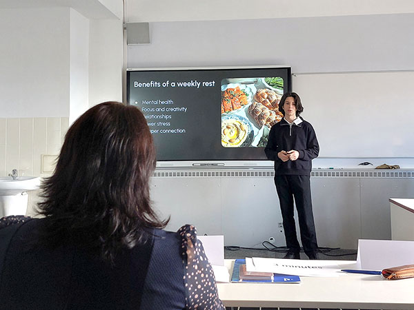 Na konci ledna 2026 jsme uskutečnili na naší škole seminář Možnosti praktického vzdělávání v Německu. Přivítali jsme na něm dva lektory ze SRN - paní Dipl. Ing. Blanku Sauer a pana Bernda Sauera z Cochemu, zkušené odborníky s celoživotní praxí v oblasti cestovního ruchu a odborného i vysokoškolského vzdělávání. Žáci školy měli v rámci tohoto semináře také možnost se seznámit se zkušenostmi naší úspěšné absolventky a nyní studentky mezinárodních vztahů na Filozofické fakultě Západočeské univerzity Bc. Anežky Pechové. Ta hovoří několika jazyky a získala už mnoho praktických zkušeností ve svých oborech v různých zemích světa, včetně řady zahraničních stáží, mezinárodních konferencí i studijních pobytů.
