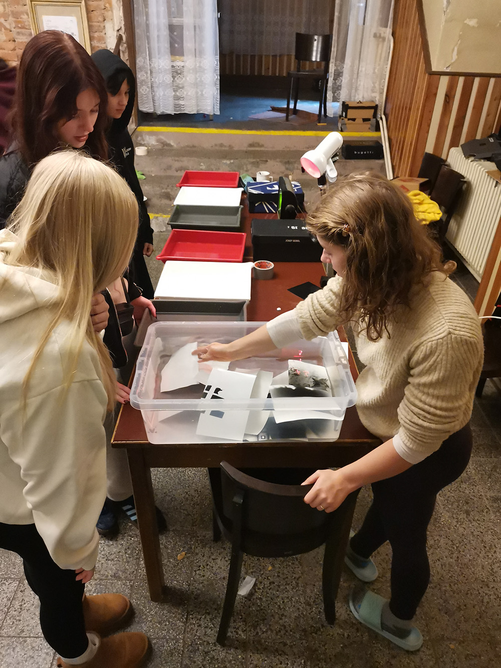 Studenti si vyzkoušeli vyvolat černobílý film, na který předtím pořídili snímky pomocí analogového fotoaparátu. Z negativů pak v improvizované fotokomoře vznikly originální černobílé fotografie. Největší výzvou – a zároveň zážitkem – bylo zachytit snímek pomocí repliky prvního fotoaparátu na světě, camery obscury, kterou si žáci sestavili z obyčejné krabice od bot. Průvodcem světem fotografie jim byl pan učitel Adam Brosch.