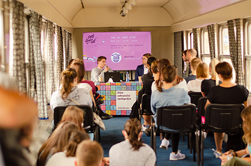 Pavel Maxa a Petr Novák, úspěšní absolventi zahraničních stáží Erasmus+ a absolventi naší školy, přednášeli a besedovali na záříjovém Festivalu mezinárodního vzdělávání Příští stanice svět.
