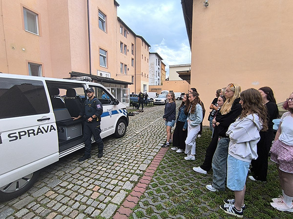 Součástí programu byly praktické ukázky práce mobilního celního dohledu na třech stanovištích. Žáci měli možnost nahlédnout do reálné praxe celníků – seznámili se s postupy při kontrole mýtného, s výstrojí a ozbrojením složek Celní správy, i s tím, jak celníci rozpoznávají a analyzují nežádoucí látky.