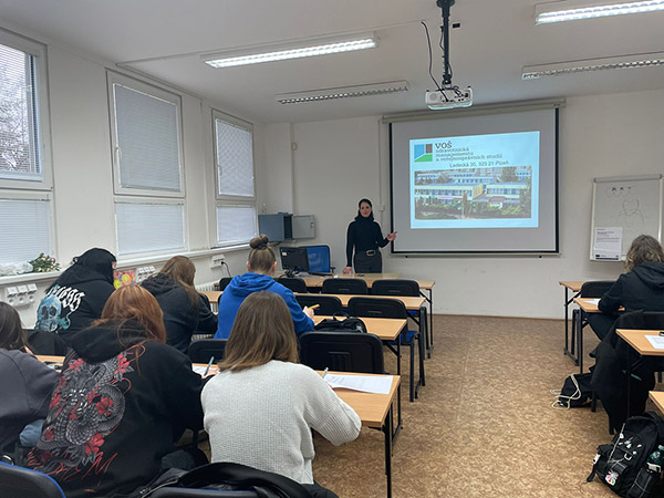 Výborných výsledků dosáhly naše studentky v krajském kole Soutěže v cizích jazycích, které se konalo 19. března 2025. Jedná se o náročnou soutěž vyhlašovanou Ministerstvem školství, mládeže a tělovýchovy ČR, jejíchž krajských kol se tradičně účastní nejlepší jazykáři z celého Plzeňského kraje – výherci školních a okresních kol. Součástí soutěže je poslech s porozuměním, konverzace se členy soutěžní poroty na různá témata a řešení jazykových situací.